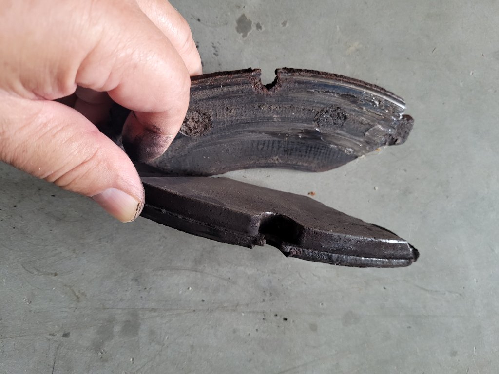 Linke Bremse Metall auf Metall, rechts noch Belag für reichlich 40.000km.