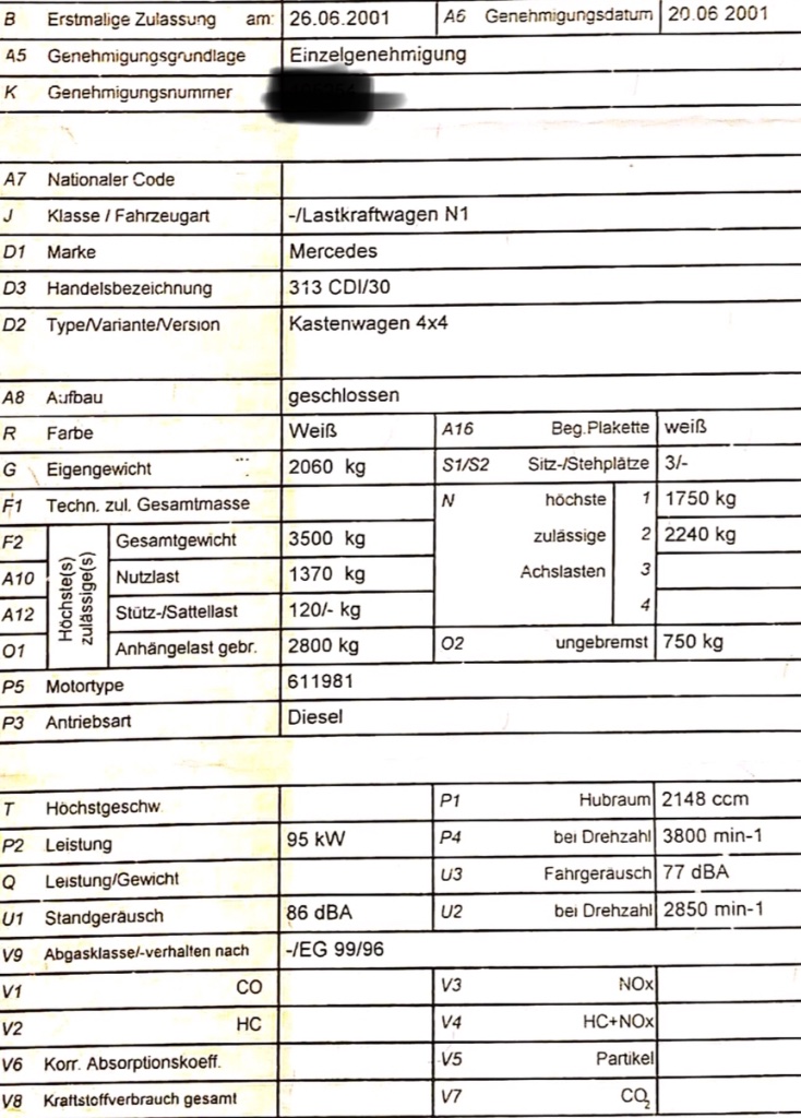 Das Fahrzeug hat eine Einzelzulassung, weil es entwederBastianFrenzen hat geschrieben: 12 Jun 2019 19:57Inwieweit ist das mit der Einzelzulassung denn problematisch? Kenne mich mit der Materie leider nicht so gut aus. Wann wird den so eine Einzelzulassung überhaupt gemacht? Kann es damit zusammenhängen, dass bei dem Fahrzeug andere Reifen zugelassen wurden?Vanagaudi hat geschrieben: 11 Jun 2019 23:39 Einen DPF zu finden ist eine Sache, der muss ja noch rechtskräftig eingetragen werden. Da sehe ich ein Problem, einmal ist das ein 4x4, zum Anderen hat der Wagen eine Einzelgenehmigung. Da wird man sich schwer tun, die zugehörige Schadstoffeinstufung zu finden.