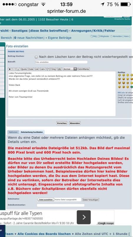 eine allgemeine Frage, wie stelle ich zu meinem Beitrag ein oder mehrere Fotos ein????