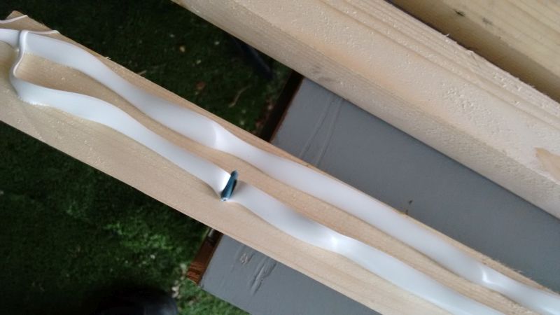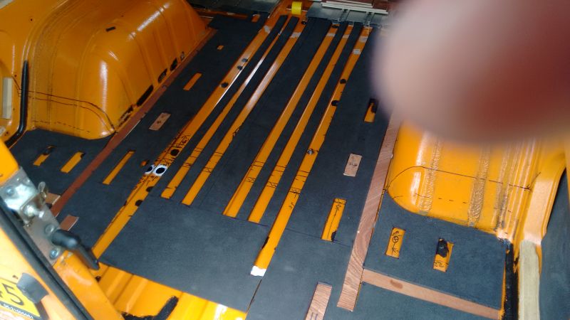 Ausser ganz Links alles geklebt, ohne Schrauben damit es Ruhe gibt bei verwindungen. Geklebt mit Polymerleim, mit resten VD Elektriztätsdraht darunter damit nicht beim Anpressen alle Kleber raus gepresst werd. Ø60 Löcher für Webasto Ausstromer auch bereits (vor das Kleben) gemacht.