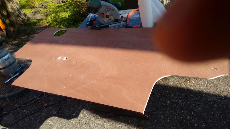 Für die Rest nehme ich auch 9mm, aber nür etwa 4cm breite Streifen. Die Deckplatte werd, zum gewichtsparen, auch 9mm und braucht daher etwas unterstutzung.