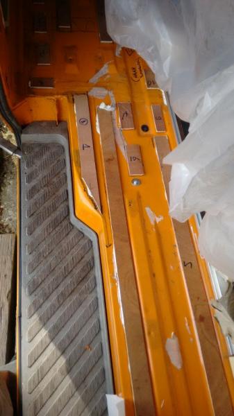 Öffnungen für Wasser und 230V gemacht, noch nicht fest eingebaut. Finde das Weiß nicht schön... veilleicht noch Kunsstoffprimer und Orange daruber. Erhöhtes Flurteil probe gemacht. Das ist jetzt 120mm hoch, die erst gedachte 100mm waren zu niedrich für die Fußen auf die drehbare Sitzen. Habe jetzt ausgefunden das es auch Wassertanks von 120mm höhe gibt....... veilleicht für ein Crafter in 15 Jahre!