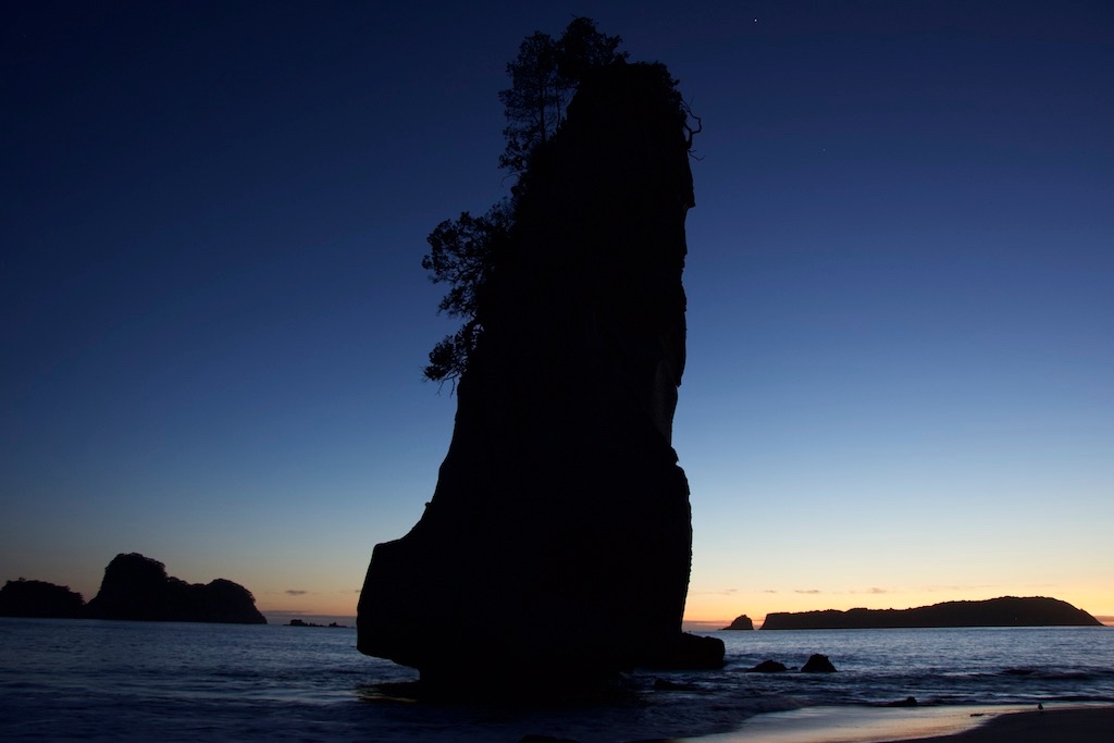 das hat sich völlig gelohnt, heute um 5:30 aufzustehen und zur Cathedral Cove zu laufen. Die gleiche Idee hatten noch zwei andere Foto begeisterte. Und so wanderten insgesamt 300 Bilder auf die Speicherkarte. Ich glaube, da sind einige ganz gute dabei