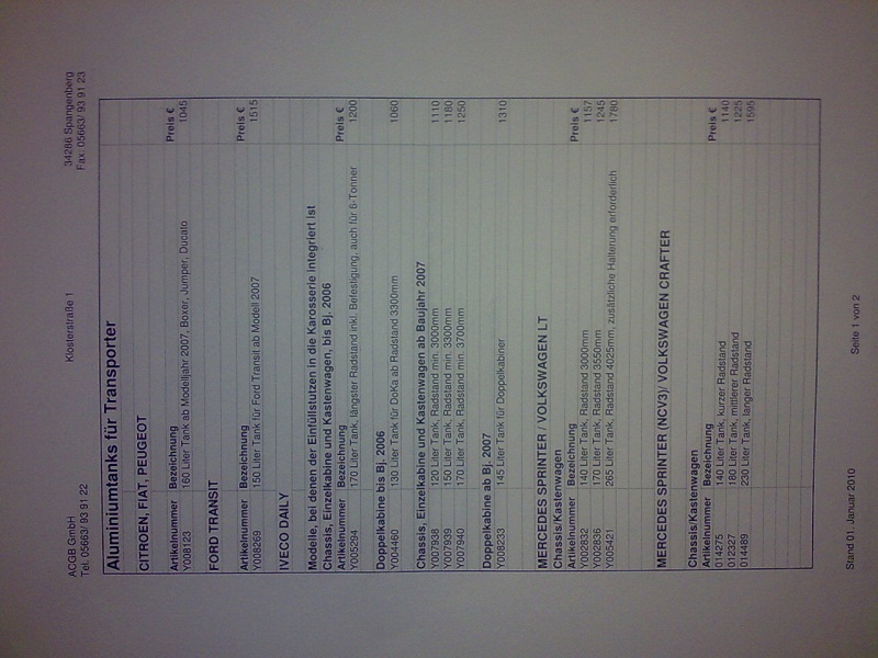 Habe mal dort angerufen 180L 1225,00€ netto und 220L 1595,00€ netto für einen aktuellen Sprinter Maxi Kasten :shock: , dann lasse ich lieber 2 mal am Tag tanken