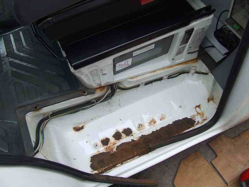 Meine Tritte hinter den vorderen Radkästen sind von innen rechts wie links komplett durchgerostet und hängen quasi nur noch am von außen aufgebrachten Rostschutz...
