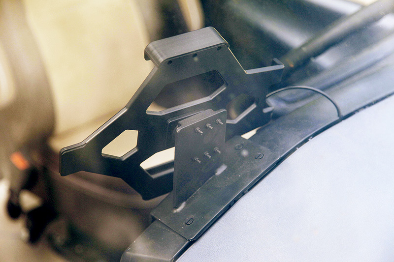 Damit das ganze dann auch noch praktisch und schick im Auto verbaut werden kann, habe ich mir eine Halterung gekauft und einen Befestigungsfuß anfertigen lassen. Das outdoor iPad Cover hört auf den NAmen Otter box, die Halterung ist von Brodit und der Fuß aus Alu angefertigt.