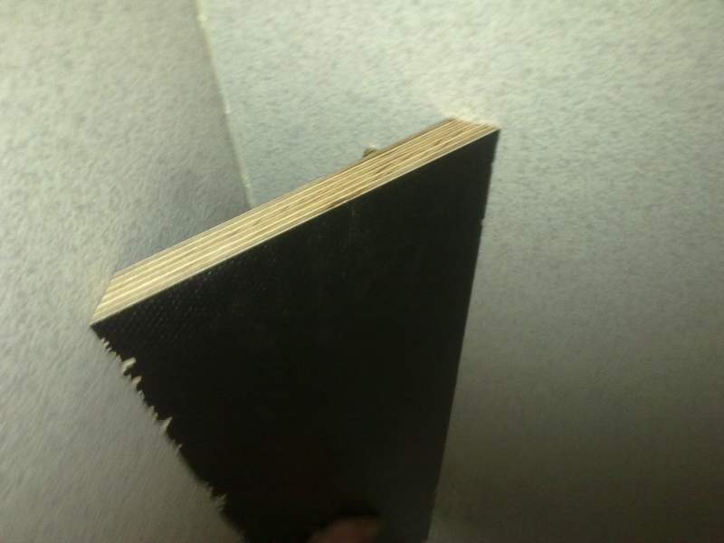 Nun ging es zum neuen Aufbau der Energiesäule. Eine rechteckige Variante wollte ich nicht, sonder eine Diagonale als Kontrast zu den ganzen Ecken. Man nehme also eine 22mm starke Siebdruckplatte und versehe sie beidseitig mit 45° Gehrung und überprüfe das Stück Holz: