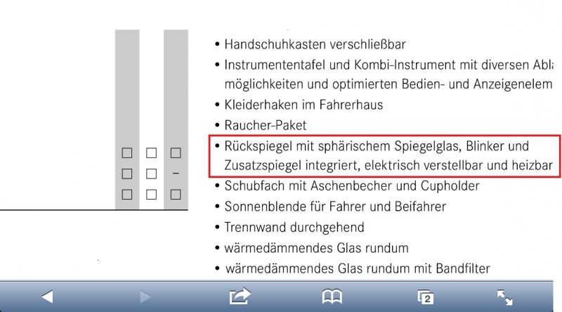 Also mit Baugebinn 2006 sind die verstellbaren und heizbaren Spiegel in Deutschland bis heute Serienausstattung in der Liste von MB:
