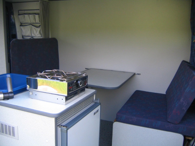 Bei meinem zweiten selbstausgebauten mit kurzem Radstand hatte ich auch eine Sitzgruppe die zum Längsbett umgebaut werden konnte. Zum umbau wurde der tisch abgesenkt, seitlich an den Sitzkonsolen wurde eine Verbreiterung ausgezogen und die beiden Rückenkissen wurden mit zum Bettbau verwendet. Die Dimensionierung aller Kissen war so ausgelegt, dass keine zusätzliche Kissen mitgeführt werden mussten. Auf den Bildern kann man die Sitzmöglichkeiten sehen.