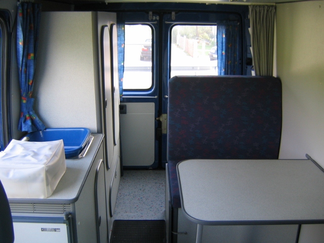 Bei meinem zweiten selbstausgebauten mit kurzem Radstand hatte ich auch eine Sitzgruppe die zum Längsbett umgebaut werden konnte. Zum umbau wurde der tisch abgesenkt, seitlich an den Sitzkonsolen wurde eine Verbreiterung ausgezogen und die beiden Rückenkissen wurden mit zum Bettbau verwendet. Die Dimensionierung aller Kissen war so ausgelegt, dass keine zusätzliche Kissen mitgeführt werden mussten. Auf den Bildern kann man die Sitzmöglichkeiten sehen.