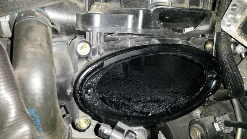 Als die Klappe und die notwendigen Teile Ausgebaut waren musste ich feststellen das da wo die abgase in den motor laufen eine 1cm dicke sicht ruß liegt ist das normal habe bilder davon gemacht