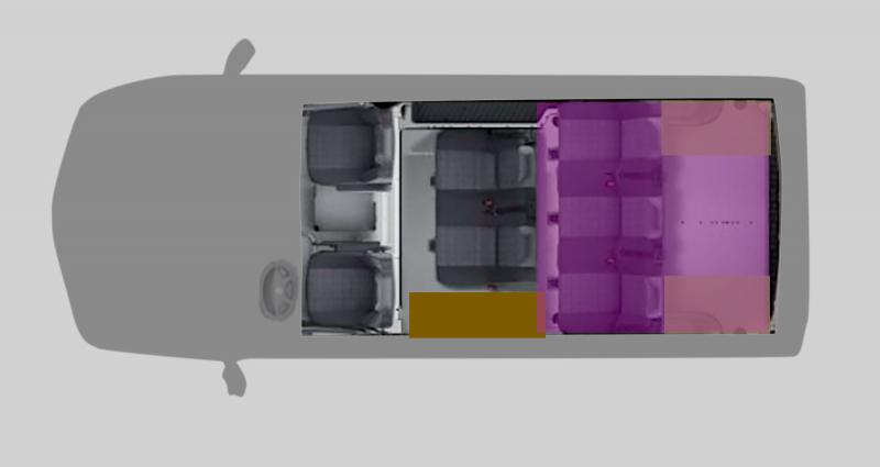 Um die hinteren Radkästen je einen schmalen Schrank der das hintere Bett(lila in der Grafik) trägt.