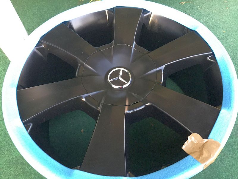 Wie gleich zu Anfang von mir erwähnt, die Embleme sind bombenfest aufgeklebt, diese hier komplett aus Kunstoff, absolut Witterunngs- und Salzbeständig, aber er wird wohl auch weiterhin eher vergeblich nach kompletten passenden Nabenabdeckungen mit Stern suchen wollen !