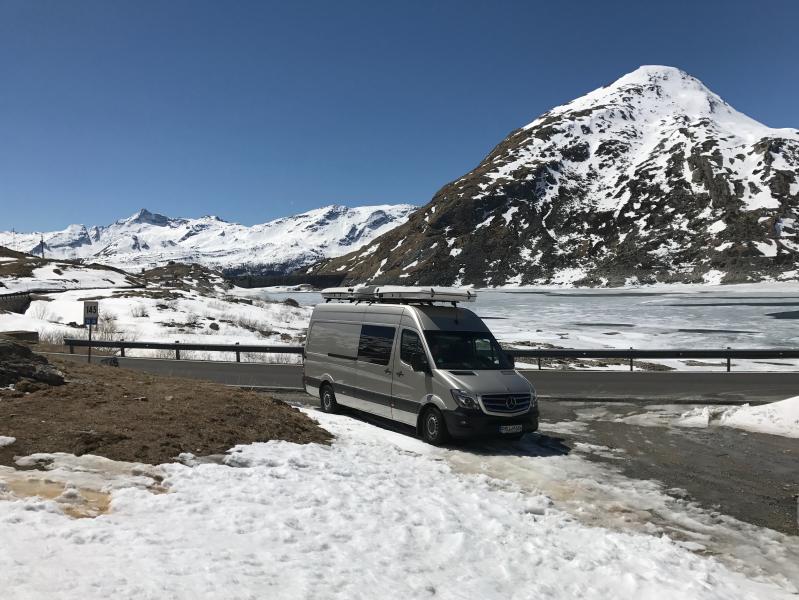 Das am Splügenpass fast ganz oben angekommen dann an den letzten Tunneln max. Höhe 2,3m dranstand hat mich ja kurz irritiert, aber aus Italien kommend war es da zum umdrehen schon lange zu spät; Sprinterchen ging mit knapp 3m trotzdem durch.