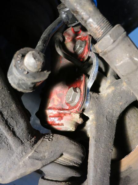 So, sind drin die Dinger - jetzt noch mal Spur einstellen und dann testen! Anzugsdrehmoment 300 NM - von einem schräg aufliegenden Schraubenkopf auf der Rückseite nichts mehr zu sehen...