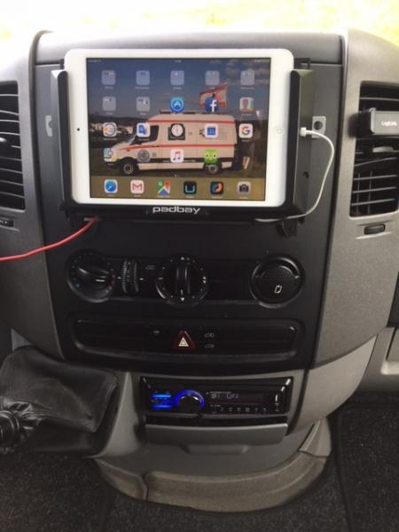 Jetzt habe ich es geschafft. Ich wollte eigentlich in mein Sprinter ein iPad mini einbauen und in mein lokales Netz (ja, das hebe ich in meinem Sprinter) integrieren. Also Ablauf: altes Radio (original von MB 1-DIN LG) ausgebaut. Ich dachte zuerst ich kann es einfach rausziehen, denkste, ich musste fast ganze Abdeckung demontieren. Auch gut: dabei habe ich ein Paar zusätzliche freie Kabel entdeckt: GPS und Telefon-Antennen (Danke Skipper01! für Hinweis). Das neue 1-DIN-Radio mit BlueTooth und USB ( aus China, 26,90 €) habe ich nach unten in den freien Fach eingebaut. Den freigeworden 1-DIN-Fach habe ich auf 2-DIN erweitert und dorthin eine PadBay-Halterung eingebaut. Das Ding wird m.M.n viel zu teuer angeboten (74,00 €) ich habe aber sonst nichts passendes gefunden. Der Vortel ist dass ich jederzeit mein iPad einfach reinstecken und wieder rausziehen kann. Die BT-Verbindung funktionierte sofort und ohne Probleme. Jetzt kann die Musik von meinem iPad über das Radio abgespielt werden. Die eigene App von Padbay taugt nicht viel. Auserdem kann ich unterwegs alle iOS-Apps (Navi, E-Mal, Skype, DashCommand etc. abspielen.