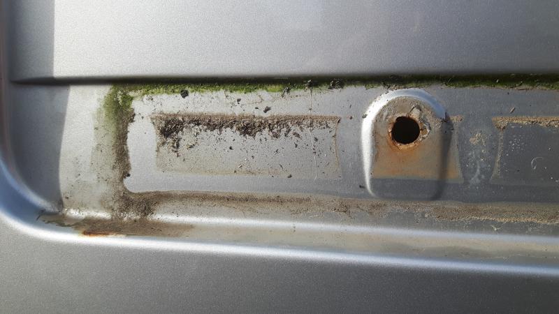 Meine Frage, die Ursache des Problems kommt beginnt oberhalb der Laufschiene beim Beginn der Biegung und zwar auf der Innenseite des Seitenwandblechs. Dieser Teil ist mi Silikon oder KFZ Spachtel ausgefüllt.