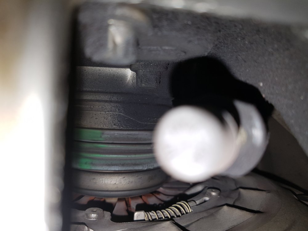 Bei Dir könnte die Betätigung der Druckplatte gebrochen sein und das kann man eventuell erkennen indem man die Lamellen der Betätigung durch die rechte Öffnung in der Getriebeglocke anschaut.