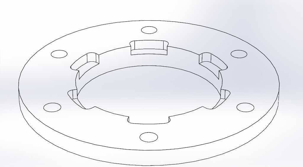 In der Zeichnung sind 16 mm Scheibendicke angenommen. Man sieht, dass man die Scheibe nicht dünner machen sollte, da sonst die Zentrierungsbohrung und der Zentrierungsflansch so nahe beieinander stehen, dass der Materialsteg zu dünn wäre. (Ich will das Teil ja aus Alu fertigen.
