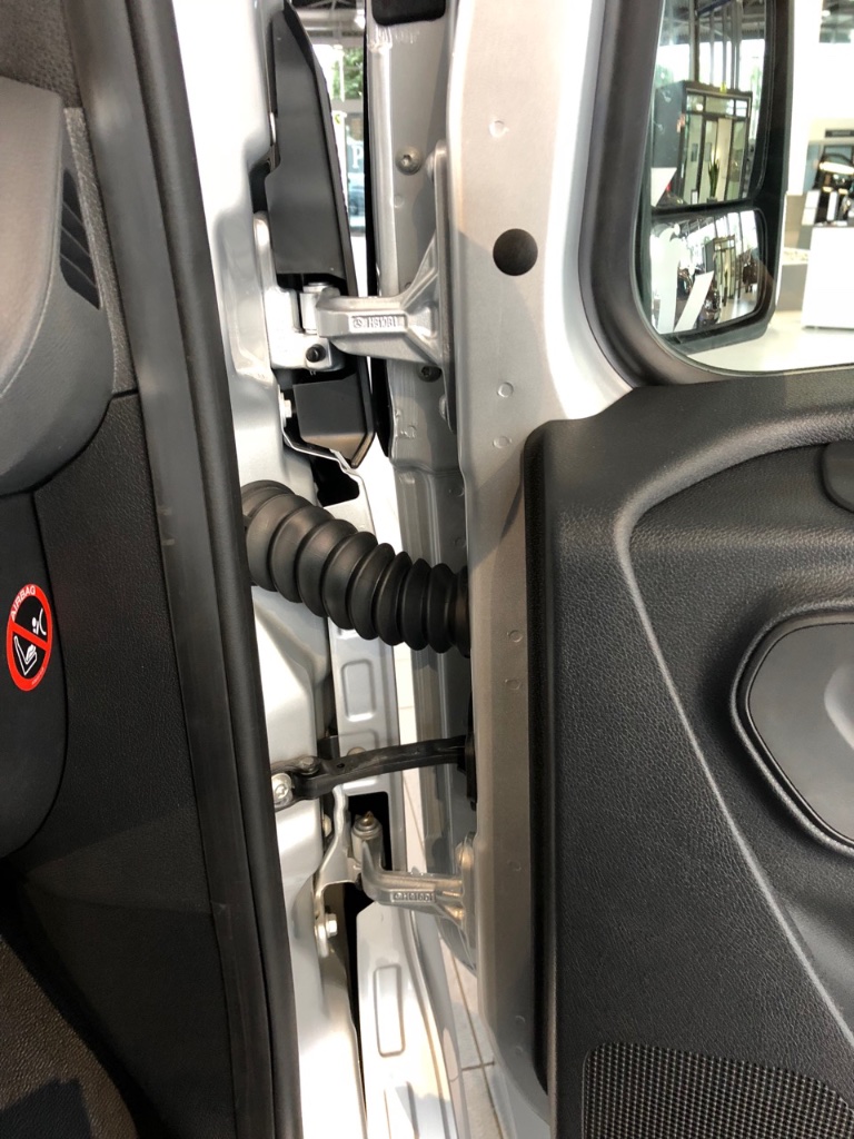 ) wie in der V-Klasse bzw. VW Bus, scheint immer serienmäßig zu sein (auch ohne Zuziehhilfe). Vielleicht bekommt man so den Strom zu einer Musikbox in der Tür, an die Energiegliederkette unten habe ich mich nie rangetraut.