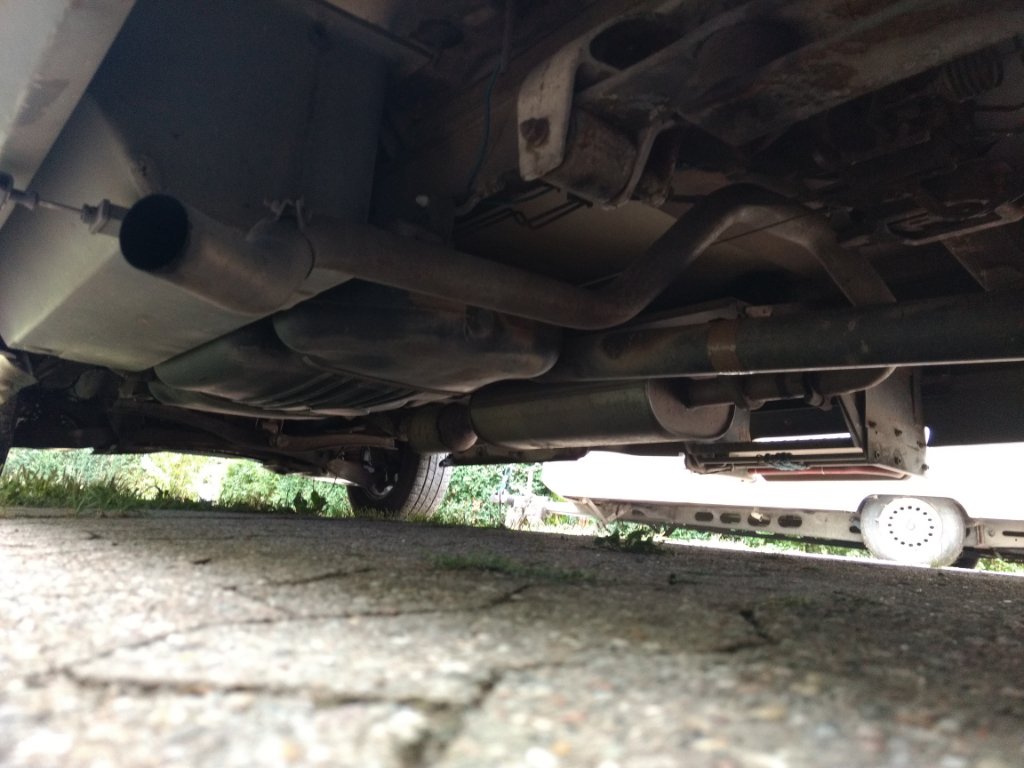 Bisher dachte ich auch, dass kurz hinter dem Schalldämpfer also mitten unter dem Auto) Schluss wäre ..... aber dann habe ich am Wochenende vor und hinter der Hinterachse noch Halterungen entdeckt, an denen sogar noch die Haltegummis hingen --- da hat dann wohl auch jemand das laaaaaaaange Endrohr "geklaut".