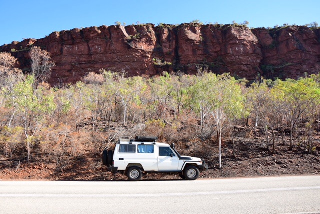 Um zum Purnululu NP zu kommen muss man einmal über die Landesgrenze und jetzt bin ich nicht mehr im Northern Territory sondern in Western Australia. Der Grenzübertritt läuft hier mit einer Quarantäne Kontrolle ab. Man darf vom NT kein Obst, Gemüse, Nüsse etc. nach WA einführen. HIer hat man riesige Angst vor der Fruchtessigfliege. Ich wußte das ja schon vorher und hatte in Darwin nur soviel eingekauft, wie ich in 2 Tagen an Grünzeug so wegfuttern kann. Das Gespräch mit dem Officer war dadurch entspannt. Ein oderen Wohnmobilisten hat man alles aus der Kühlbox rausgeräumt und entsorgt. Eine Strafe gibts hier dafür nicht. Anders als wenn man von Victoria nach Southaustralia einreist...wenn man da vorher nicht alles aufgegessen hat oder entsorgt hat und man wird kontrolliert, dann wirds richtig teuer. Die verstehen hier keinen Spaß bei sowas.