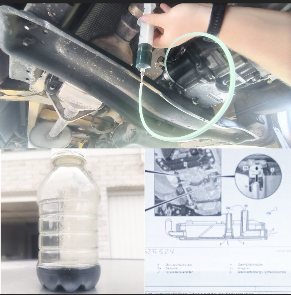 Vor drei Jahren habe ich direkt nach dem Kauf des ehem. Postkoffers bei Mercedes das Sprintshift Hydrauliköl wechseln lassen. Circa 25.000 km ohne Probleme später habe ich nun den Hydraulik-Ölstand überprüft und dabei festgestellt dass "sehr viel" Hydrauliköl aus der Kontrollgewindebohrung rausgelaufen ist. Mittels Spritze, einem Stück einer Dieselstandheizungsleitung und Gummiverbinder (Dm 10mm) konnte ich problemlos die Befüllgewindebohrung (M10x1) mit etwas Druck befüllen (siehe Foto).
