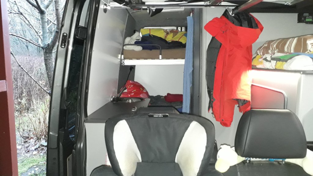Mein Ausbau wiegt mit Dachbox und Trägern, sowie 1/2 vollen Tanks ca. 400 kg. Mir bleiben 700 kg Zuladung für 5 Personen incl. Gepäck. Vor dem Ausbau hatte ich 1085 kg Zuladung bei 2x4 Antrieb.