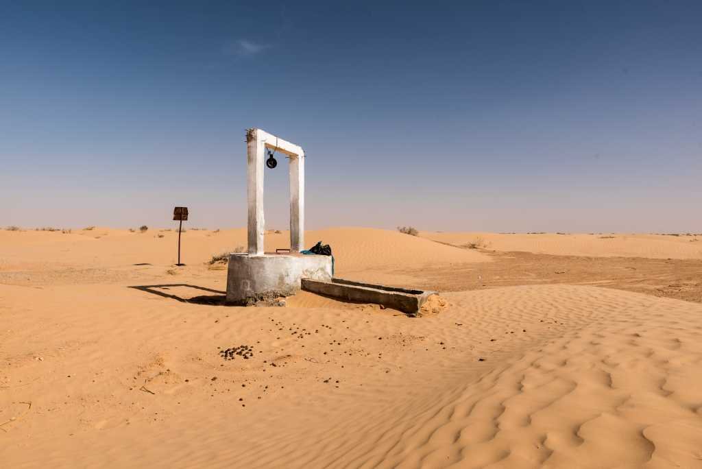 Den Stopp am Brunnen hatte er zuvor schon angekündigt und er fand den Brunnen ohne zu suchen. Wir fuhren mehr oder weniger direkt auf ihn zu, obwohl er erst zu sehen war, als wir nur noch ca. 50 Meter entfernt waren. Rings um den Brunnen waren im Umkreis von mindestens 20 Kilometern nur Dünen. Und die sehen für mich alle gleich aus …