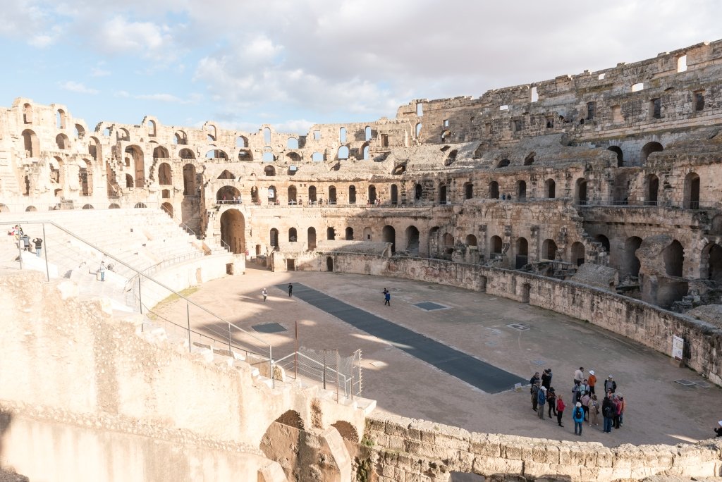 El Jem ist das drittgrößte römische Amphitheater der Welt und das größte römische Monument Afrikas. Mit einem Fassungsvermögen von 35.000 Sitzplätzen wird es nur vom Kolosseum in Rom und dem Amphitheater in Capua geschlagen. Seit 1979 zählt das Amphitheater von El Jem zum Weltkulturerbe der UNESCO.