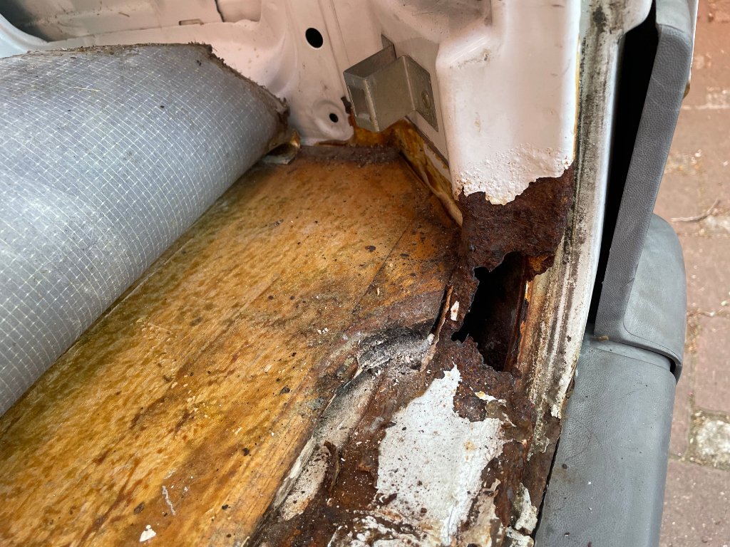 In dem Bereich des Heckabschlussbleches sammelt sich sehr viel Sand und sonstiger Dreck. Hier habe ich sehr lange mit Druckluft alles herausgepustet bis nichts mehr herauskam. Dann alle Holräume sehr sorgfältig mit Holhlraumwachs ( Vaselinemischung ) konserviert. Der Erstbesitzter hatte dieses schon bei dem Fahrzeug als Neuwagen durchführen lassen. Eventuell steht der Kasten deshalb noch so gut da.
