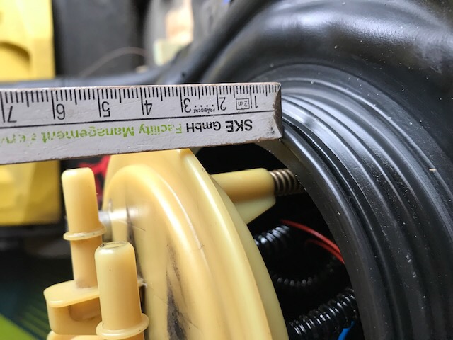 Außerdem ist noch zu beachten, dass die Tankarmatur beim Wiedereinbau gegen die Feder zwischen Ober-und Unterteil um ca. 3 cm zusammengedrückt wird. Sie klemmt gewissermaßen zwischen dem Deckel und dem Boden des Tanks. Diese 3 cm muss man das Rohr von der Entnahmesonde noch zusätzlich kürzen, damit die Ansaugöffnung der Sonde dort landet, wo man es geplant hat