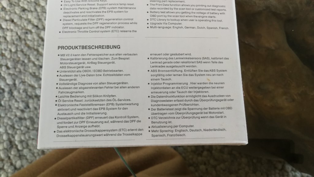 Da mein Sprinter aber ohne Probleme läuft, liegt der Tester arbeitslos im Werkzeugfach.
