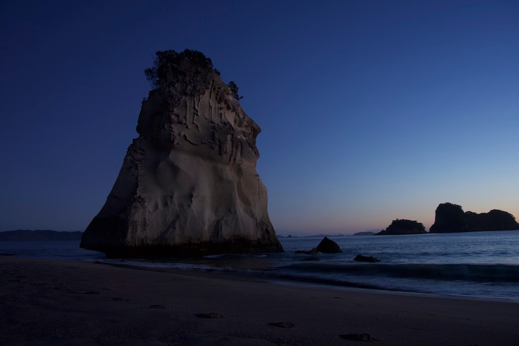das hat sich völlig gelohnt, heute um 5:30 aufzustehen und zur Cathedral Cove zu laufen. Die gleiche Idee hatten noch zwei andere Foto begeisterte. Und so wanderten insgesamt 300 Bilder auf die Speicherkarte. Ich glaube, da sind einige ganz gute dabei