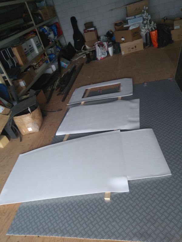 Wenn das Kleben fertig ist, noch einiges Techniches machen (Stabigummi's hinten haben Spiel, Linke Fenster geht (wieder!) nicht mehr öffen). Dann sehe ich mal weiter wie Warm es in die Scheune ist, weil die Möbelbauteilen noch Klarlack bekommen mussen.