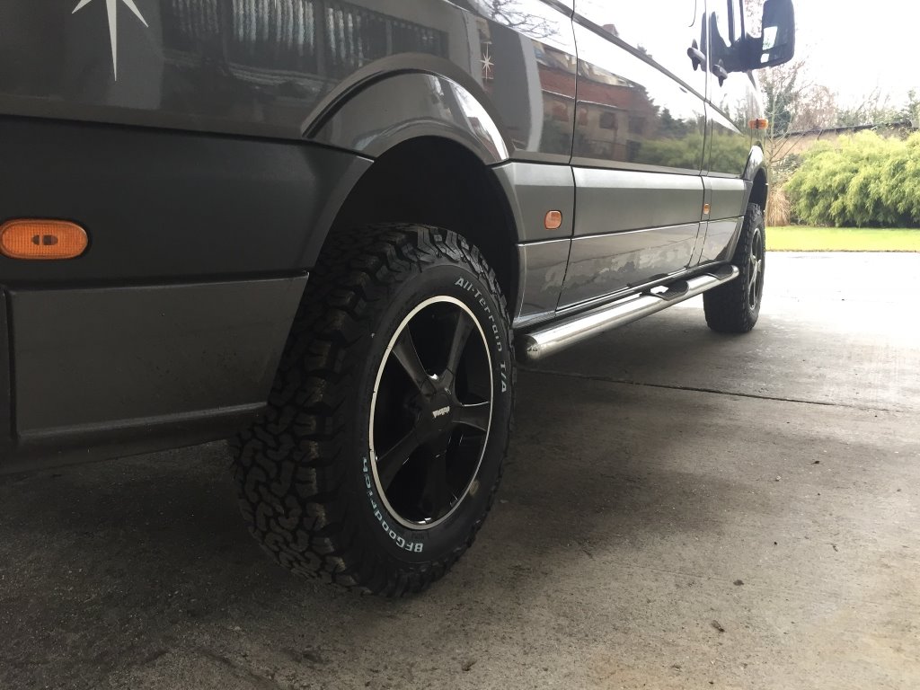 Erfolgreich umgesetzt? für 60er Höhe gibts ja zwischenzeitlich erfolgreiche Lösungen.Rosi hat geschrieben: 01 Mai 2019 07:11 Macht mal nicht so´n Kokolores. Da haben wir schon ganz andere Dinge durch, bzw. noch vor uns; z.B. 255/60R18 112 auf 2WD + 265/65 R18 117/114R auf 4WD. ABE´s für´n Sprinter gibt´s quasi keine, weil das bei dieser geringen Stückzahl viel zu teuer wäre.