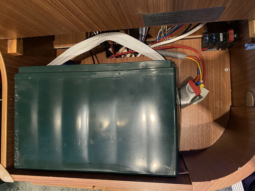 Als Aufbaubatterien sind/waren 2 St. parallel geschaltet, eine stehend unten + eine liegend darüber.