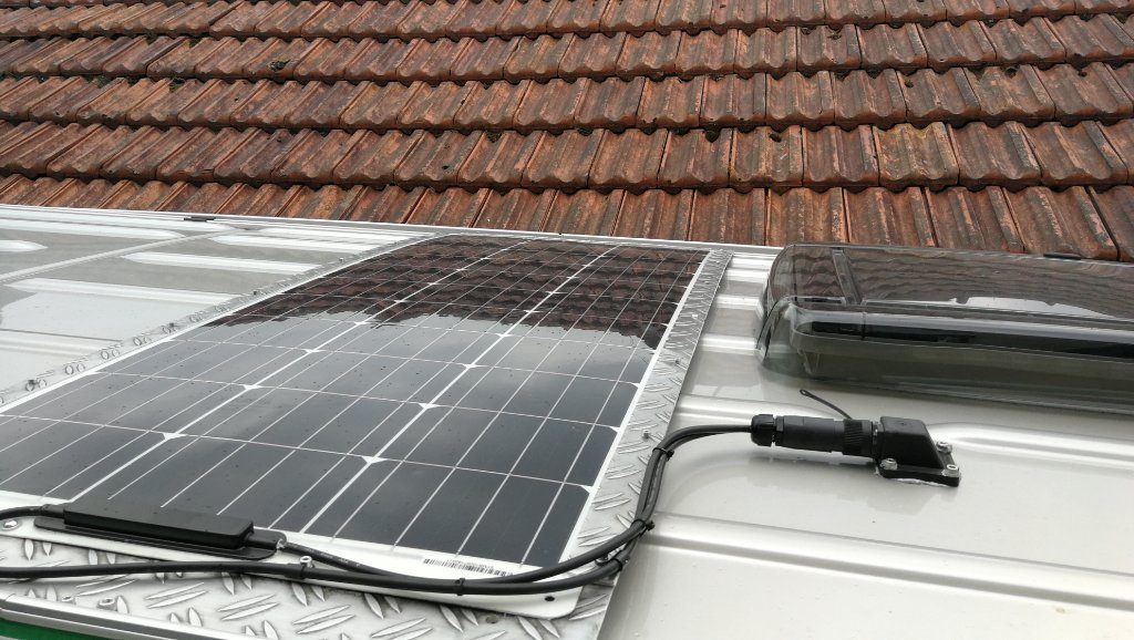 andere Lösung: ich habe 2 Panels auf dem Dach (getrennte Systeme), beide zur (relativ einfachen) Demontage. Ich hab die Flex- Panels verwendet und die rechts und Links in ein passendes Alu U- Profil geschoben. Damit die Panels etwas unter (mechanischer) Spannung stehen ist in der Mitte, parallel zu den Außenschienen eine dritte Leiste die "Dicker" ist und damit ist das Panel leicht gewölbt. Mit kleiner Schraube fixiert. Die Dinger müssen natürlich zum An/ Abstecken sein (Jachtbedarf) und Verlängerungskaben mit passenden Steckern brauchst Du auch. (
