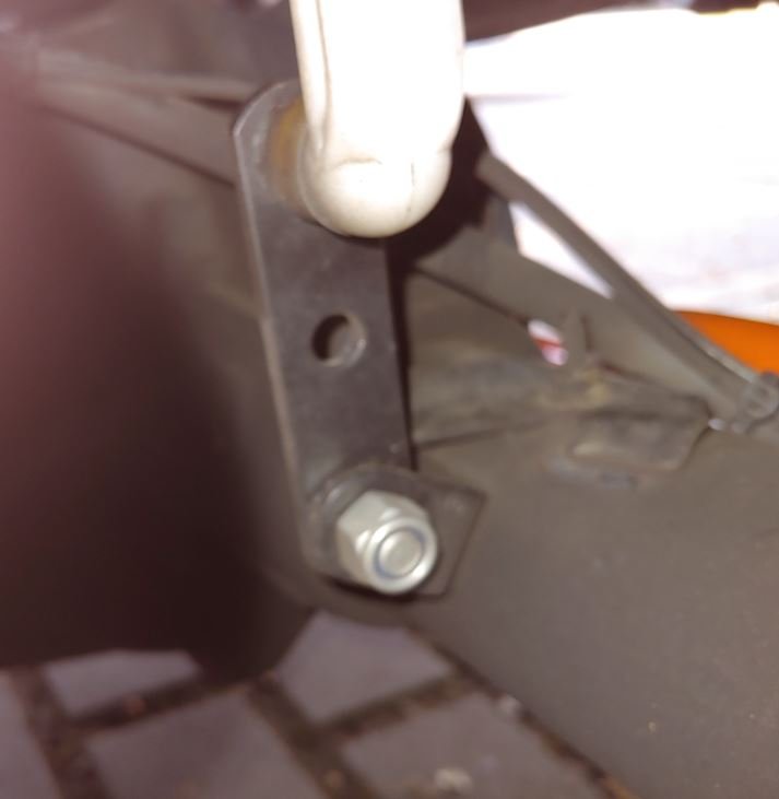 Dies habe ich geändert, indem ich ein Distanzstück mit einer M10-Schraube Gestänge und Achse montiert habe. Damit ist die ursprüngliche Geometrie wieder hergestellt.