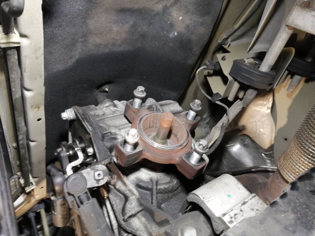 1. Kardanwelle marken um gleiche Position wiederzufinden. Kardanwelle lösen von der Getriebeausgangswelle (sieht man auf deinem einen Foto, dass ich das bereits gemacht habe) .