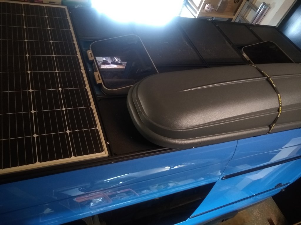 Zwei/drei/vier Kleinigkeiten fehlen noch: die 150Ah Litium-Batterie (hat gerade Lieferverzug) und die Twin-Heizung 2x2000W von Tigerexped, damit wir auch im richtigen Winter autark stehen können, Licht auf´m Dach für Skandinavien im Winter, + ca. 40l Wasser, ein paar Türchen nicht nur für den Advent.