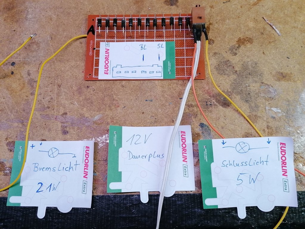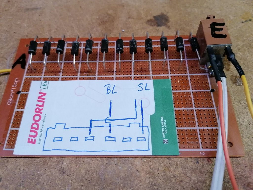 - zur Diodenplatine ( aus 12 V wird 6 V ) rein und wieder raus