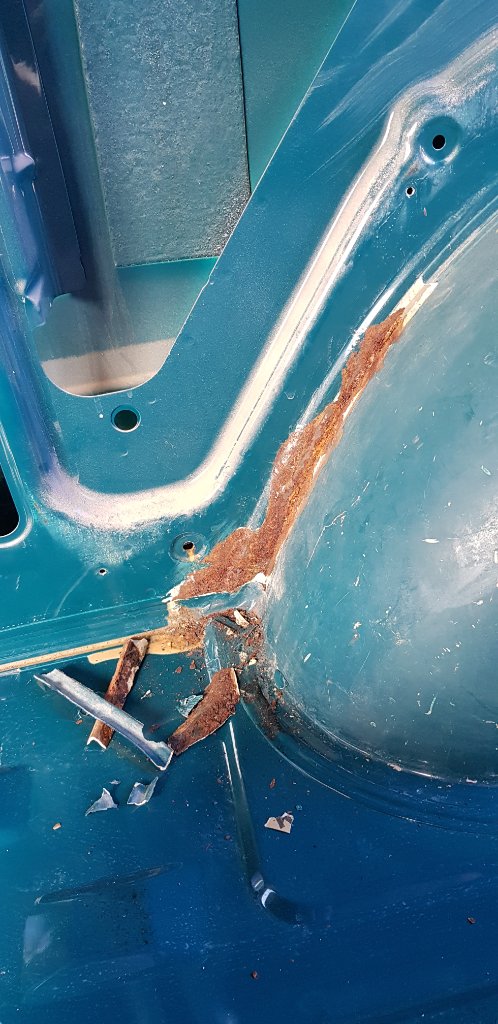 Also das Problem ist , an der Stelle liegen drei Bleche aufeinander . Wenn du die Dichtmaße innen abmachst , wirst du eine Durchrostung finden