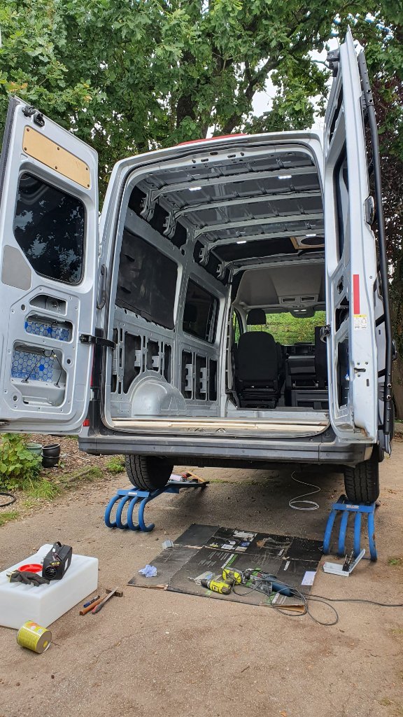 Ich hab mich ab Februar vorigen Jahres auch vergrößert (vom 28 Jahre alten T4 auf leeren Kasten MANtge (Frontantrieb, 130Kw, Automatik, 6m, Hochdach) Meine Vorstellung zum Ausbau sind zwar die Technik betreffend nicht besonders anspruchsvoll, aber mühevoll war es trotzdem.