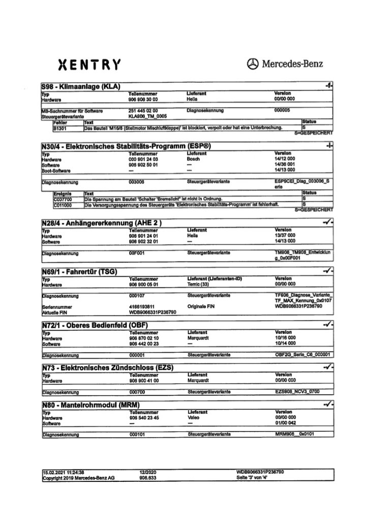 Ich habe seit geraumer Zeit die Motorkontrollleuchte brennen, ohne dass das Auto in den Notlauf geht. Diesbezüglich bin ich ganz regelkonform zu einer Mercedes-Werkstatt gefahren und habe das Auto auslesen lassen. Das mir übergebene Xentry-Protokoll habe ich euch angehangen.