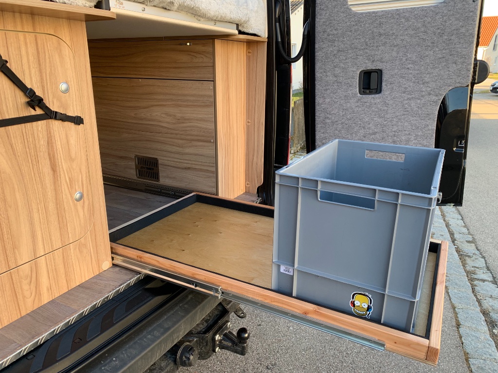 Es ist schon sehr praktisch, wenn das Bett aufgebaut ist und man etwas aus den Euroboxen benötigt.