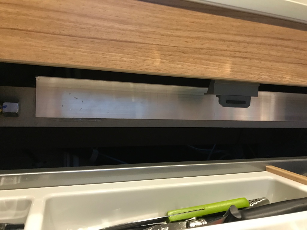 Ich habe nur ein Aluminium- L-Profil in den Schrank geklebt (siehe Foto), damit das Brett so gut wie möglich passt.