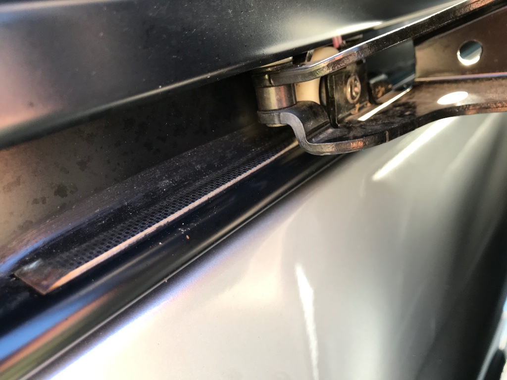 Um die Schiebetür in einer bestimmten Position zu halten, habe ich 2 Edelstahlplatten 10x100x1,5mm auf die Schiene geklebt.