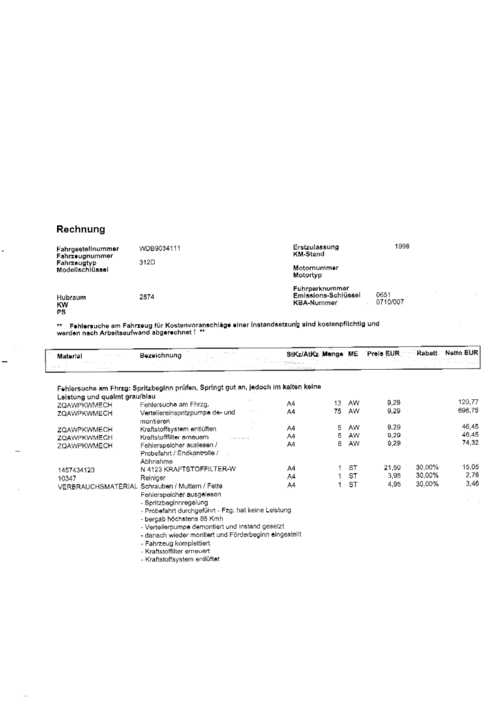 so die Leistungsprobleme kurz nach dem Kaltstart sind beseitigt. Da der Motorraum ja komplett trocken war und ist, waren die verschiedenen Möglichkeiten hier genannt. Aber es war die Verteilerpumpe.