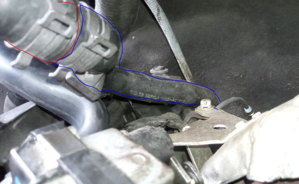 Die originale Schlauchleitung vom Motor in Richtung Provent verläuft jetzt leicht